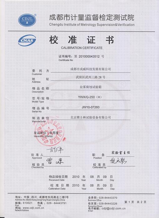 鹽霧腐蝕試驗(yàn)箱校準(zhǔn)證書-成都計(jì)量院-戎威科技
