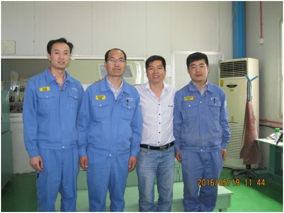 | 2016年5月19日上午,北京雅士林試驗設備有限公司調試員王工來到青島浦項不銹鋼有限公司,進行對鹽霧腐蝕試驗箱的最終驗收。經(jīng)過近一天緊張忙碌的操作培訓和測試,試驗箱各項指標都達到要求,鹽霧腐蝕試驗箱的驗收取得圓滿成功。